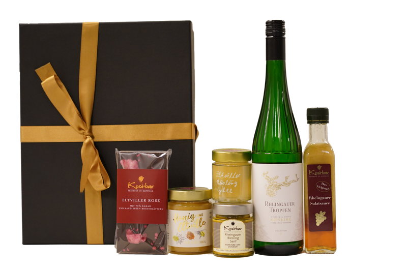 Tauche ein in die köstliche Welt des Rheingaus mit unserer exklusiven Rheingauer Genuss-Box, einer sorgfältig kuratierten Zusammenstellung regionaler Schätze. Diese Box ist mehr als nur ein kulinarisches Erlebnis – sie ist eine Hommage an die Vielfalt und Qualität, die der Rheingau zu bieten hat.In der hochwertigen, schwarzen Präsentbox enthalten sind: